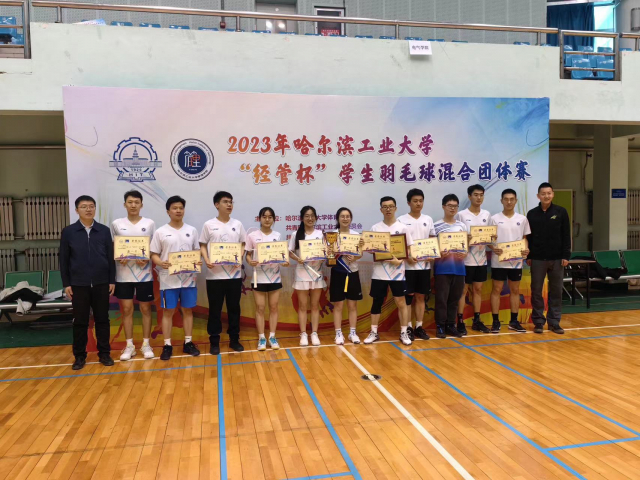 (张浩铭 图/文)2023年11月5日,哈工大“经管杯”学生羽毛球团体赛成功举办。必威体育 羽毛球队展现了出色的技术和团队合作能力,最终斩获团体赛冠军,何流同学荣获最佳男运动员称号。