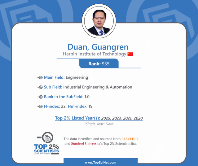 必威体育多位学者入选该榜单,其中段广仁、高会军、张立宪等39位学者入选“职业生涯影响力”榜单;段广仁、周彬、张立宪等57位学者入选“年度影响力”榜单,其中段广仁院士位居“Industry Engineering & Automation”子领域排行榜全球第一名。